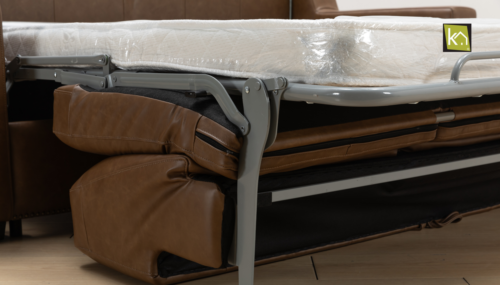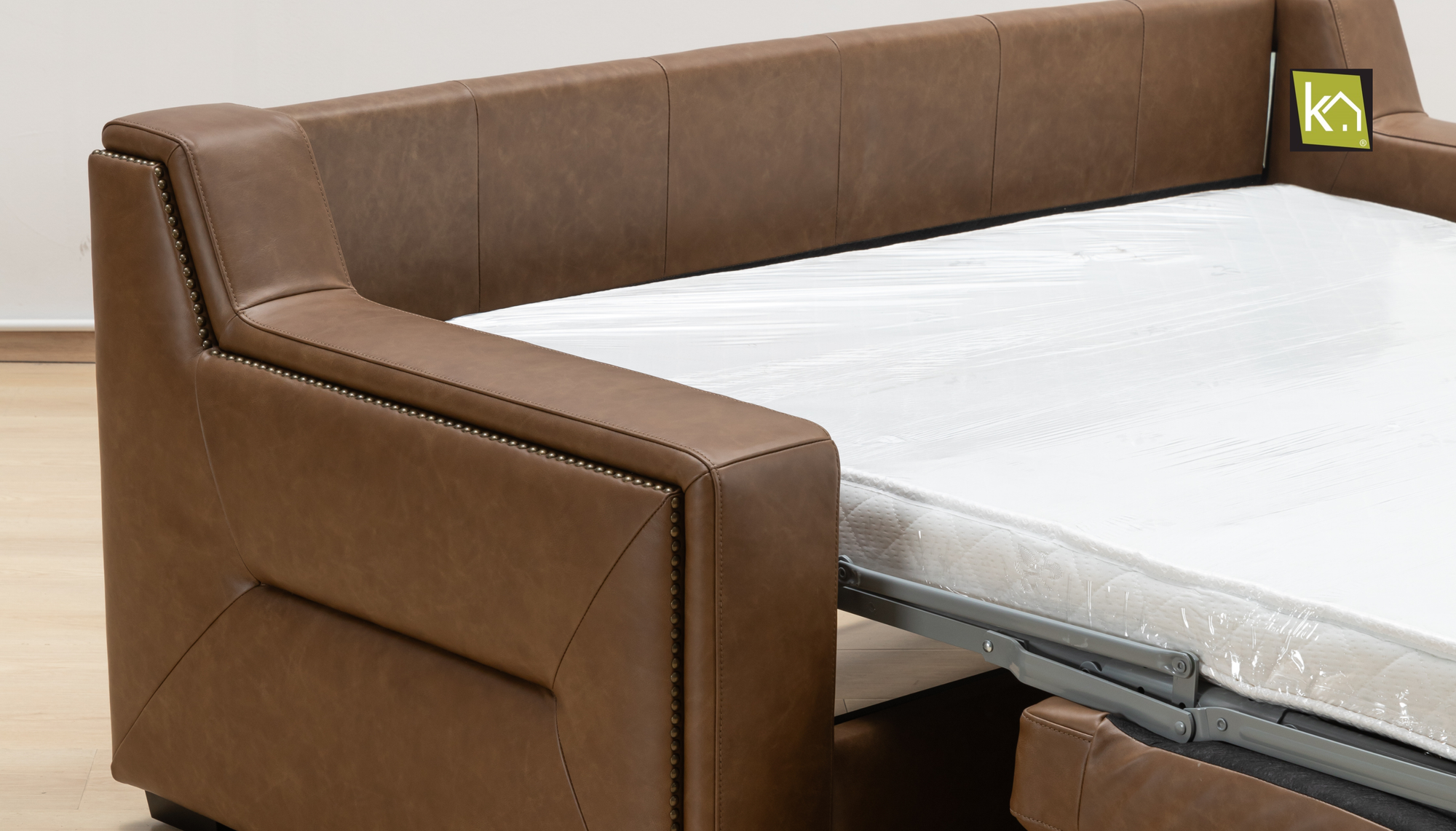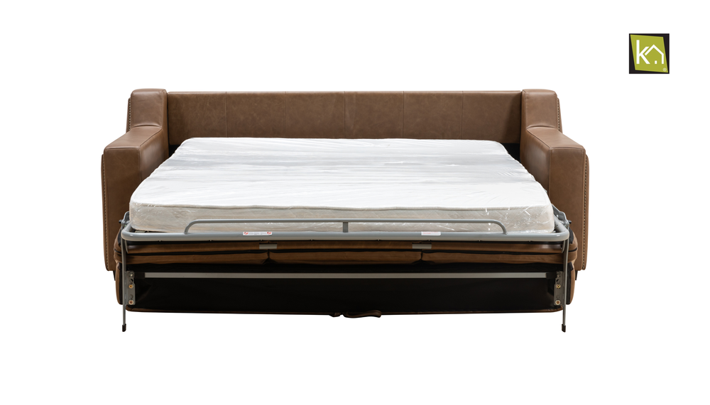 Discover elevated comfort and refined style with the Klaussner Sleeper Sofa — where premium materials meet thoughtful design. Upholstered in luxurious top-grain leather, this piece showcases meticulous craftsmanship, complete with elegant nailhead accents and beautifully sculpted wooden legs. Its clean, modern frame brings both warmth and visual balance, making it a perfect centerpiece for contemporary or transitional spaces.