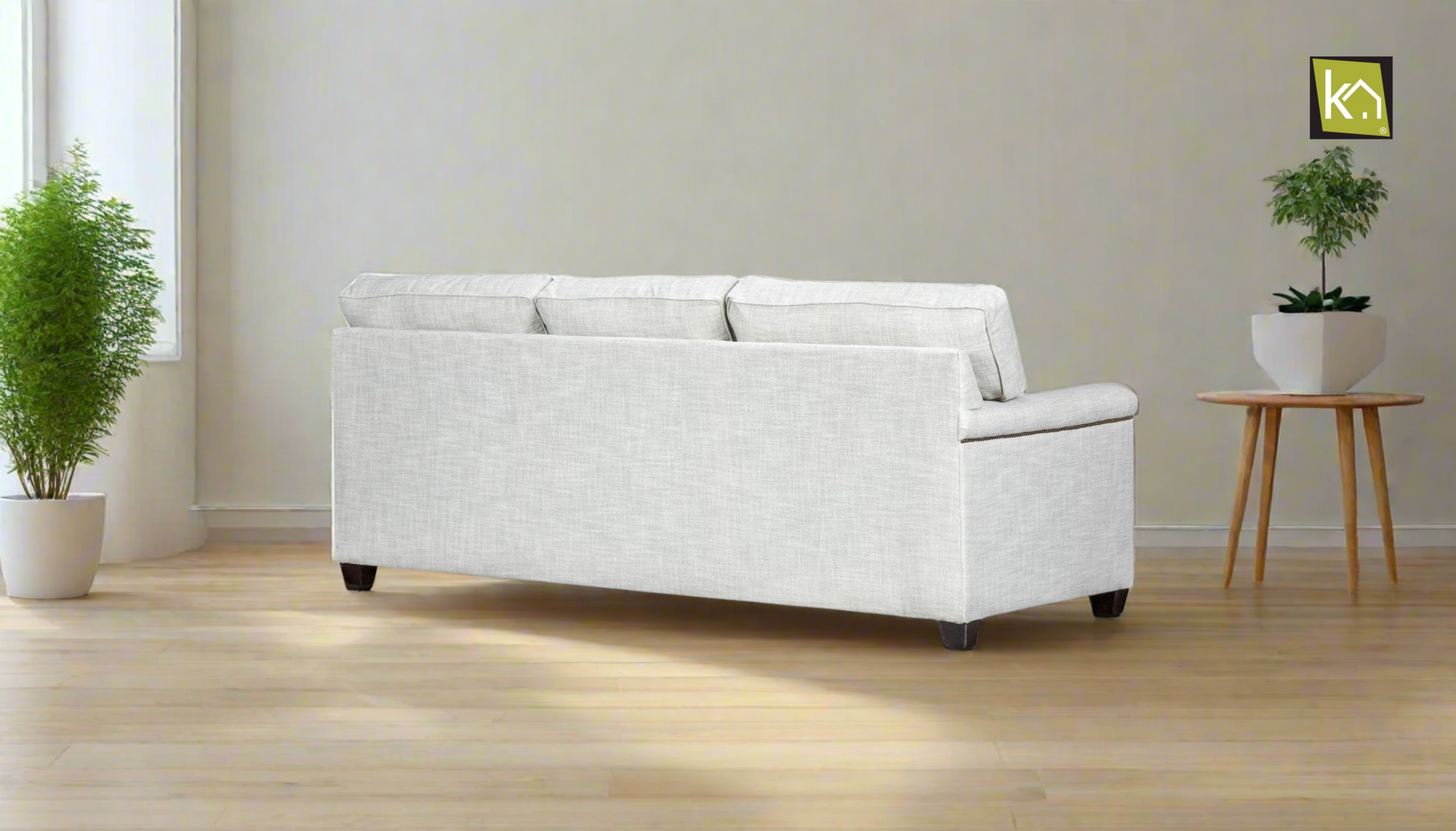 Neutral Upholstery: Versatile fabric complements various décor styles.