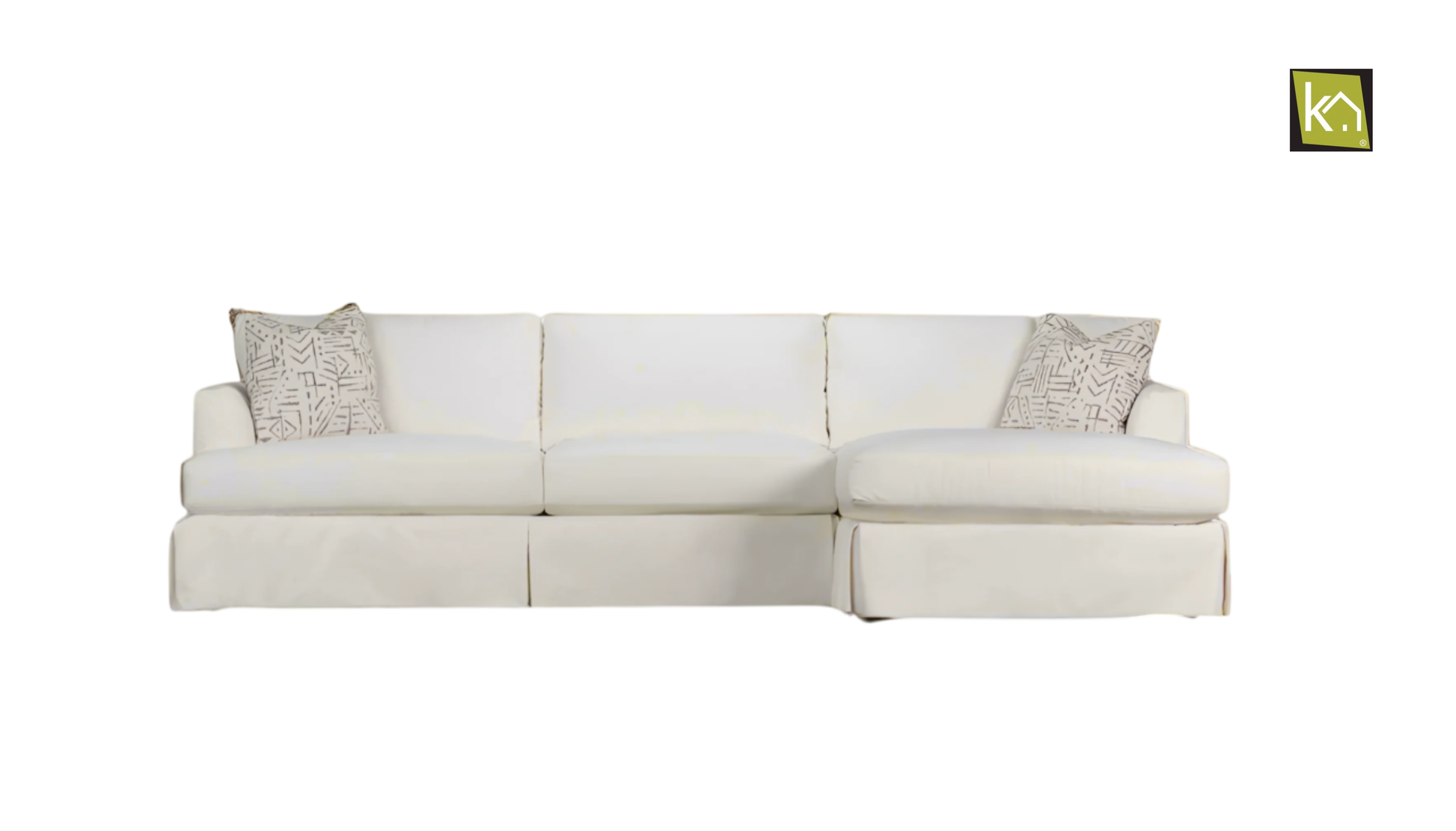 The Klaussner Slipcover Fabric Sectional Sofa in White seamlessly combines casual elegance with outstanding comfort, making it a welcoming centerpiece for any living space. Featuring clean, modern lines and a tailored slipcover design, it exudes effortless sophistication and charm. The generously filled cushions provide a plush, supportive seating experience, while the sturdy frame ensures long-lasting durability.