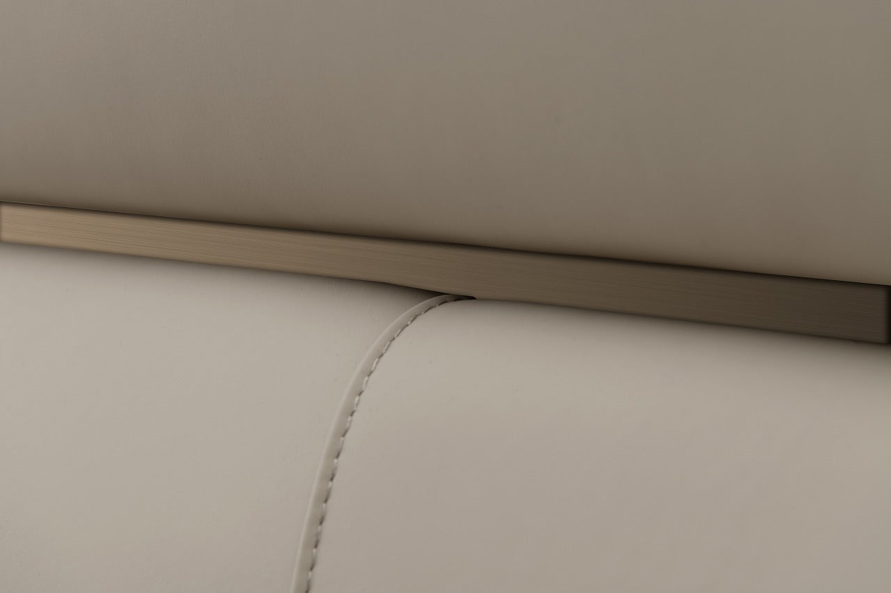 This contemporary bed is a perfect fusion of comfort and sophistication, designed with refined details that enhance both form and function. Upholstered in a soft fabric finish and complemented by brushed nickel accents, it delivers understated elegance while ensuring lasting durability. Complete with supportive slats, this bed provides a strong foundation for restful sleep.