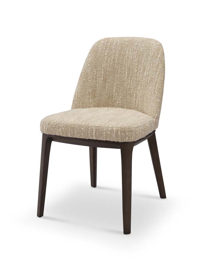 This armless chair blends timeless craftsmanship with modern simplicity, making it a versatile addition to any interior. Upholstered in soft fabric for a refined touch, it rests on solid wood legs finished in a rich dark grey tone. With its clean lines and understated elegance, this chair is perfect for dining areas, living spaces, or stylish commercial settings.