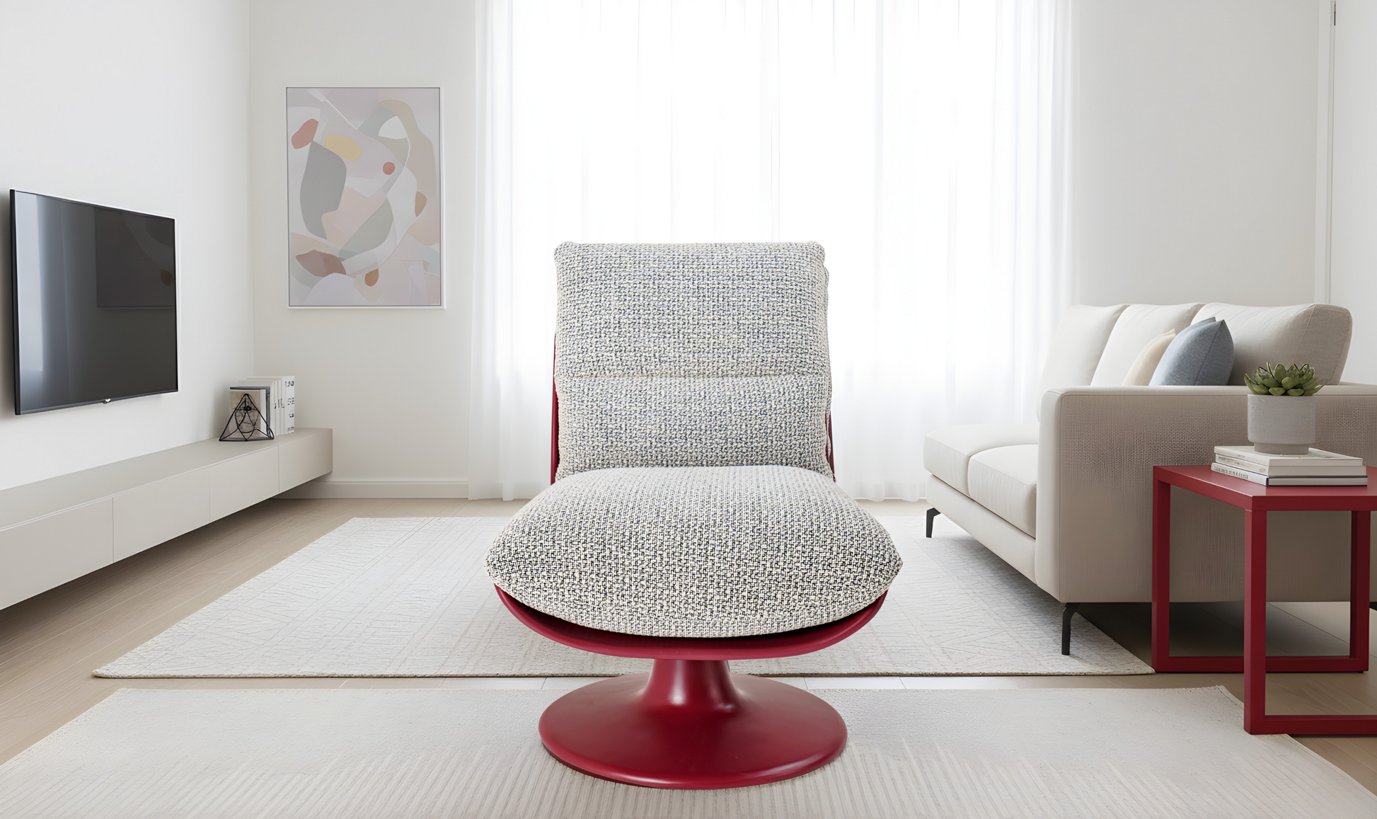 The Bespoke Hue Leisure Chair offers a modern approach to relaxed seating, where carefully chosen color meets plush textile comfort. This chair provides a clean, contemporary silhouette with the opportunity to customize the finish and fabric, ensuring it integrates seamlessly and stylishly into your unique décor.