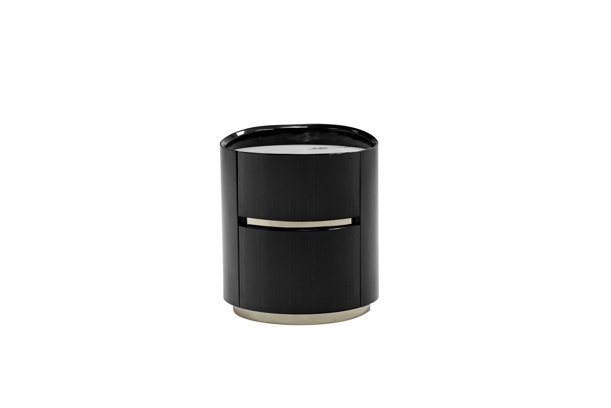 Transform your private retreat into a five-star sanctuary with the Imperial Bedroom Ensemble. This exquisite pairing of a dramatic bed and two coordinating nightstands uses a signature blend of exotic veneers and radiant metallic accents to create a space that exudes modern glamour and high-end design.