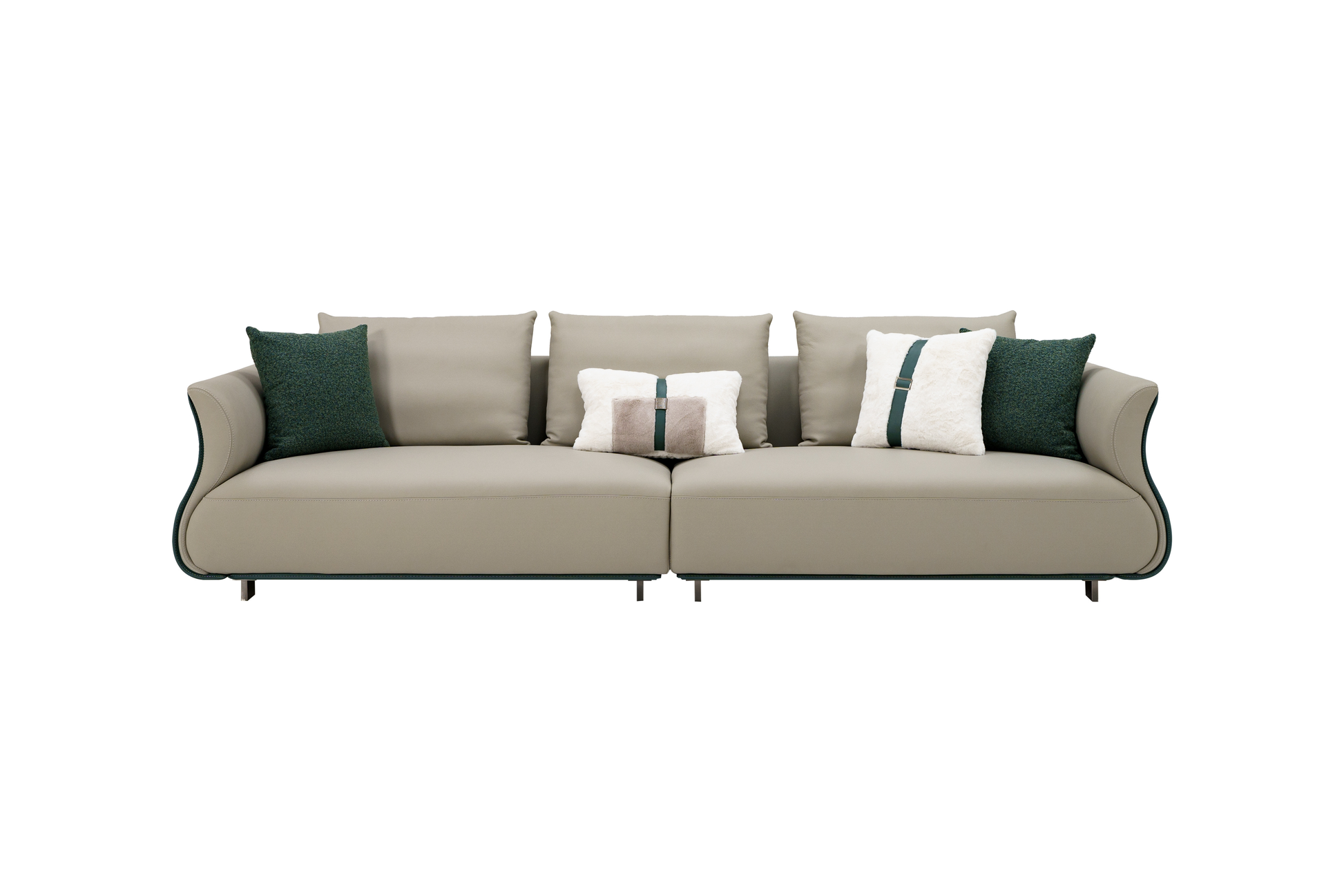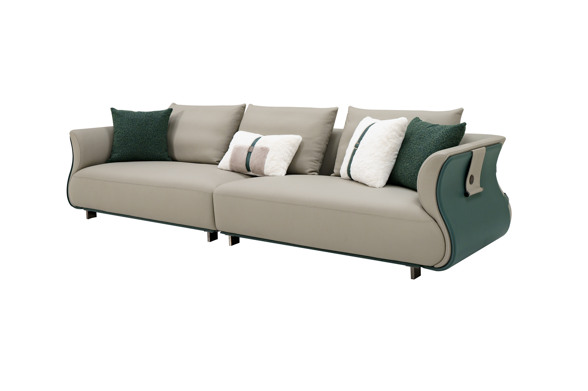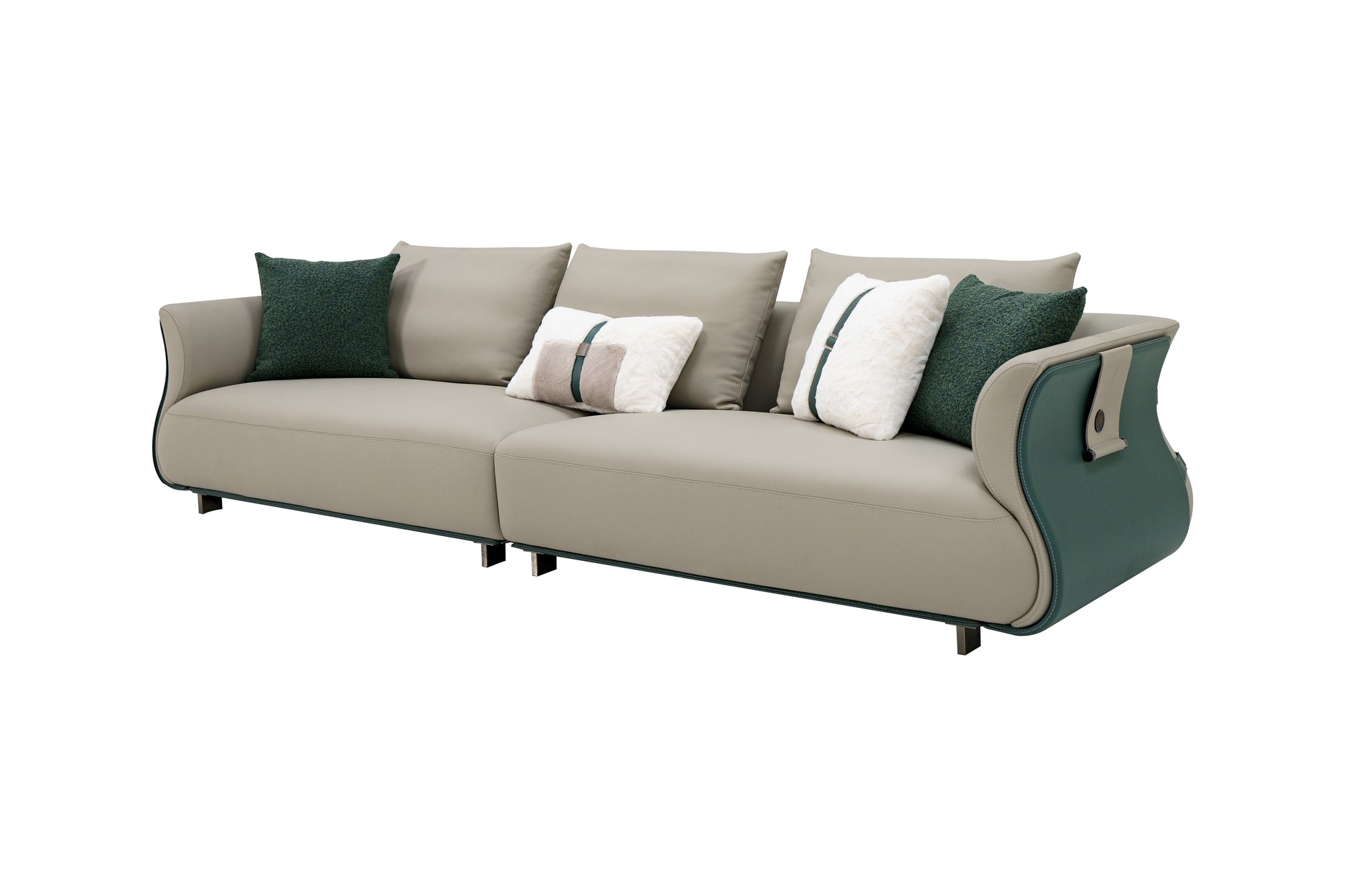 This 4-seater sofa exudes luxury and modern sophistication, designed with a bold combination of premium leathers and sleek metallic accents. The frame is enhanced with mirror-finished black titanium stainless steel, giving it a contemporary edge, while the seating is upholstered in a blend of genuine leather, microfiber leather, and microfiber saddle leather for a refined yet durable finish. Spacious and elegant, it delivers both comfort and striking style, making it a statement piece for any living room or executive space.