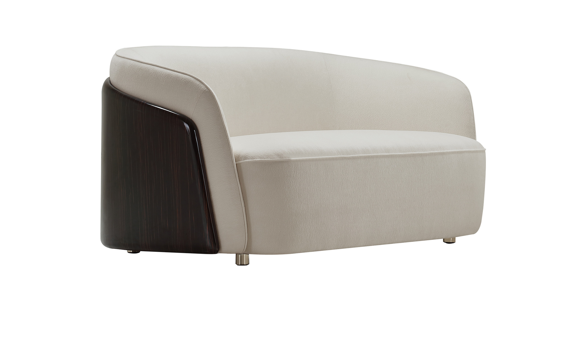 This 2-seater sofa is a masterpiece of modern elegance, combining plush fabric upholstery with the sophisticated touch of golden Macassar veneer. Finished in sleek gloss black paint, the veneer adds a bold contrast that enhances the sofa’s luxurious character. Spacious, stylish, and built for comfort, it is designed to be the centerpiece of any contemporary living space.