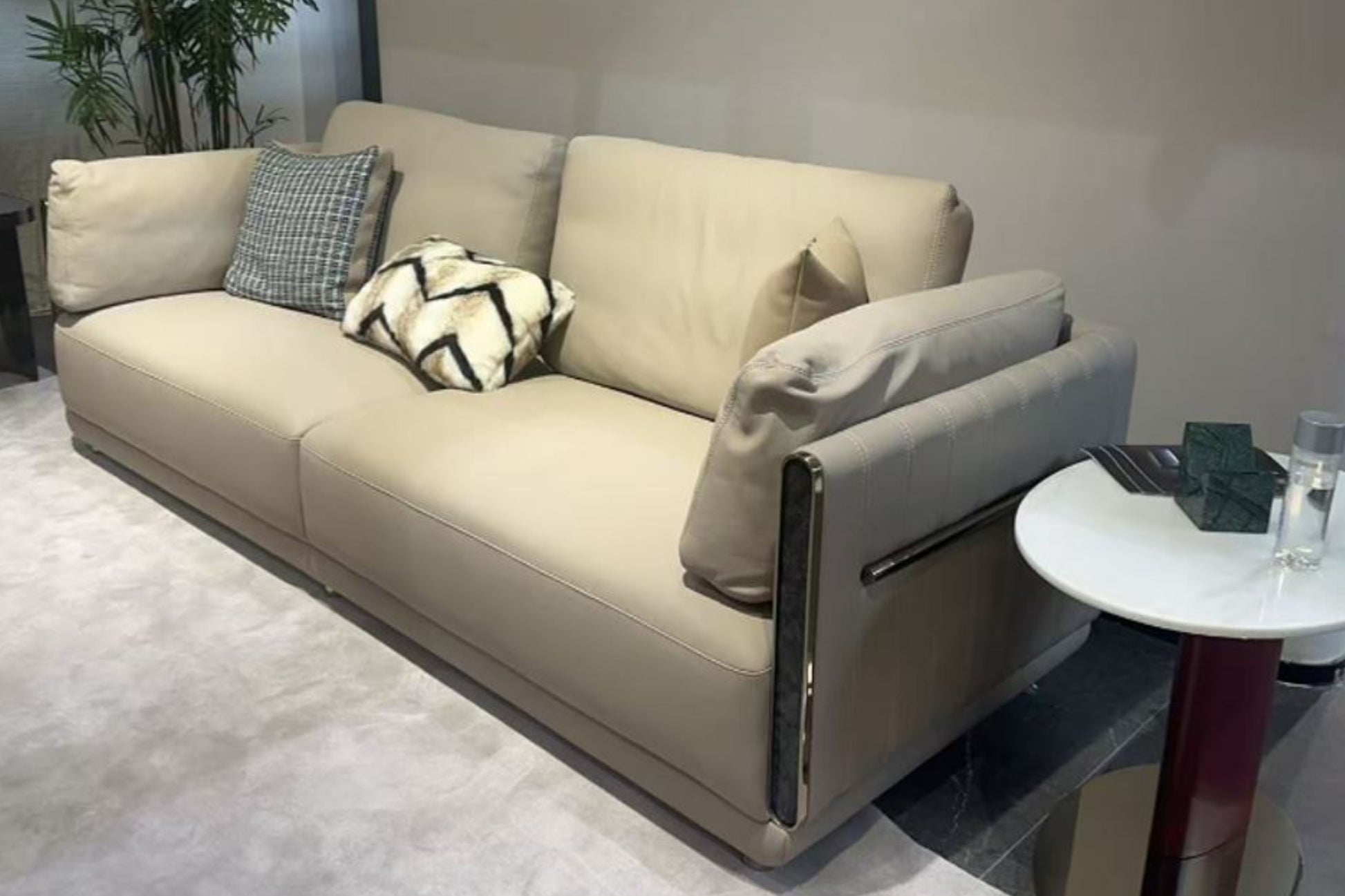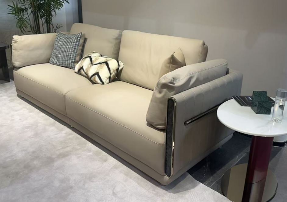 The Architectural Luxe Sofa is designed for those who refuse to compromise on either style or comfort. This commanding 4-seat sofa instantly anchors your living space, combining the inviting softness of premium upholstery with the polished, reflective brilliance of champagne gold metal, creating a stunning contemporary focal point.