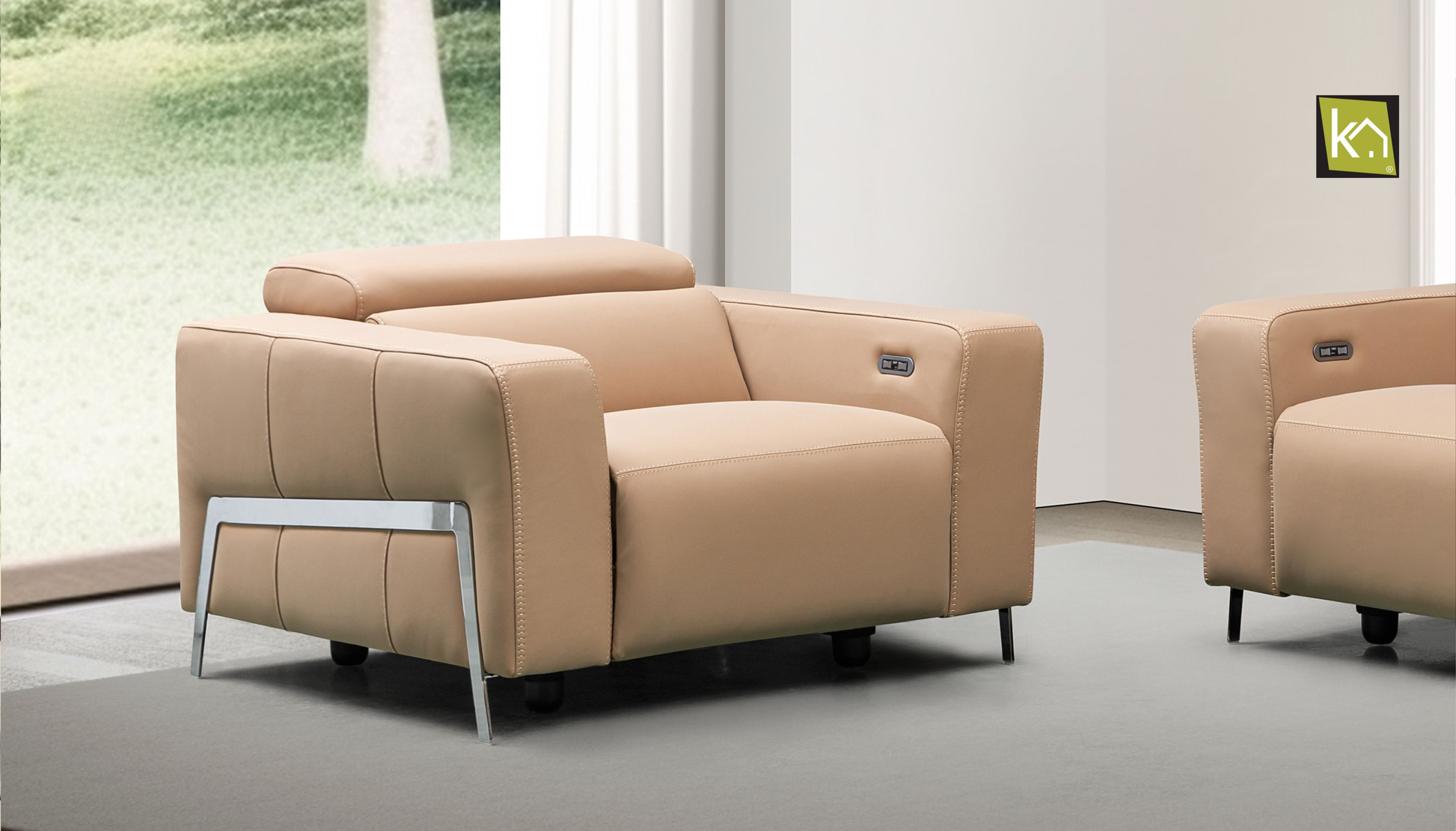 A stunning addition to any living area is the Power Reclining Chair in Camel. This chair is incredibly comfortable and luxurious, with its soft foam padding and upholstery made of Italian leather. If you crave personalized comfort and an immersed reclining experience, this recliner chair has got your back with its power reclining seats, headrest, and footrest.