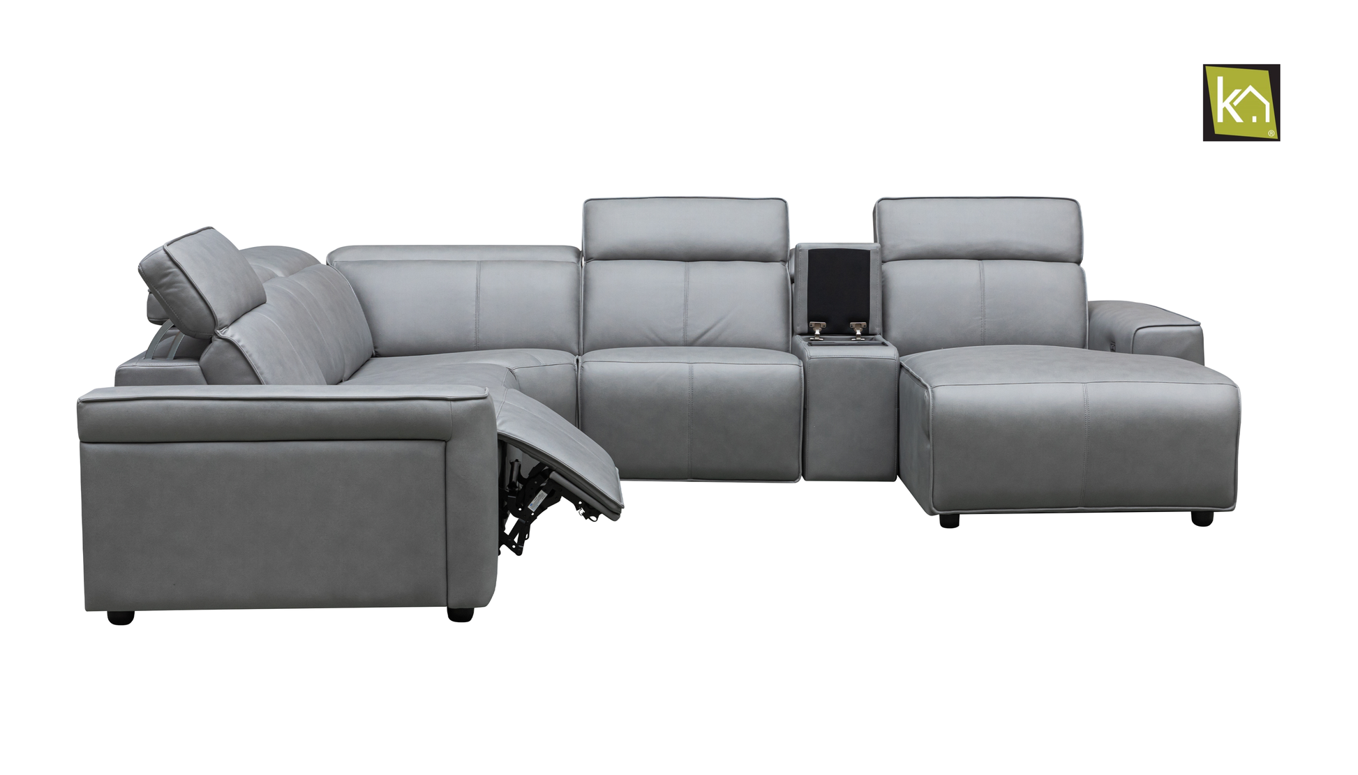 Designed for modern lifestyles, this sectional features adjustable headrests for customized relaxation and a functional console armrest equipped with hidden storage and cupholders. Perfect for movie nights or casual lounging, the KLA-SKY-B2382B sectional seamlessly blends style and practicality. Its right-facing chaise provides ample room to stretch out and unwind, creating a perfect balance of luxury and utility.