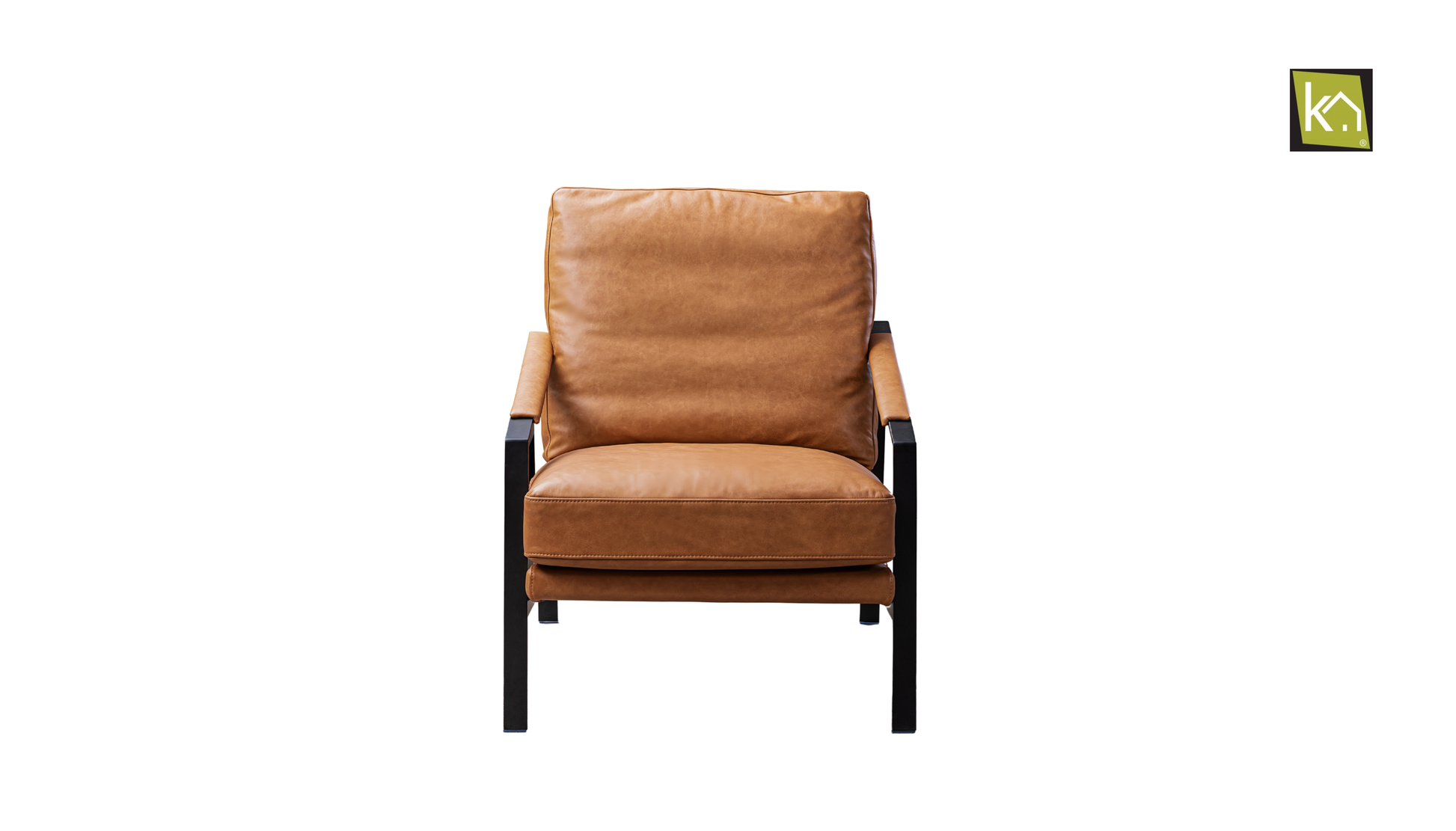 Redefine your living space with this sleek and sophisticated leather accent chair, designed to blend industrial charm with modern elegance. Wrapped in rich caramel-toned genuine leather, this chair exudes warmth and character while offering a refined, timeless aesthetic. The minimalist frame, crafted from sturdy black metal, creates a striking contrast against the plush cushioning, making it a standout addition to any contemporary, loft-style, or mid-century modern interior.